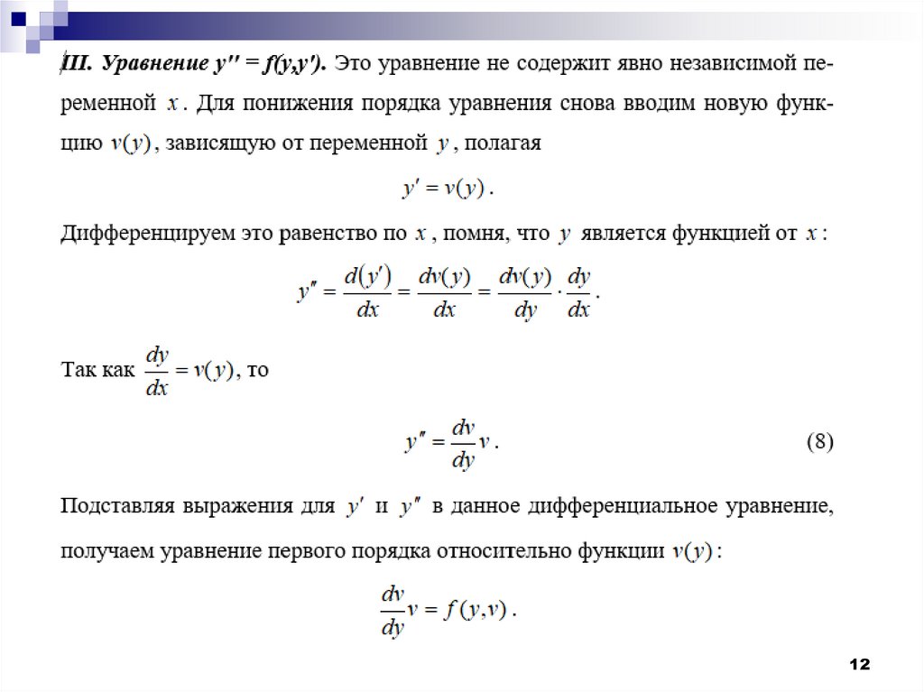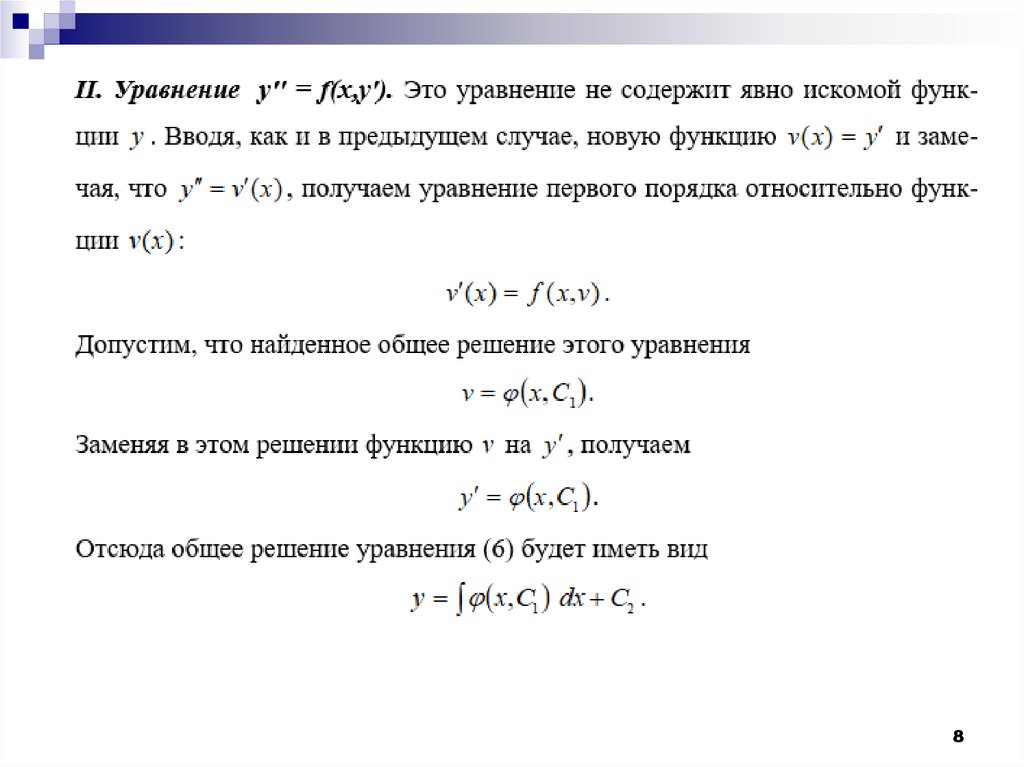 3. П.1 Простейшие уравнения второго порядка, допускающие понижение порядка