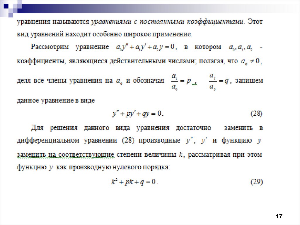 Линейные однородные уравнения 2 порядка с постоянными коэффициентами, так