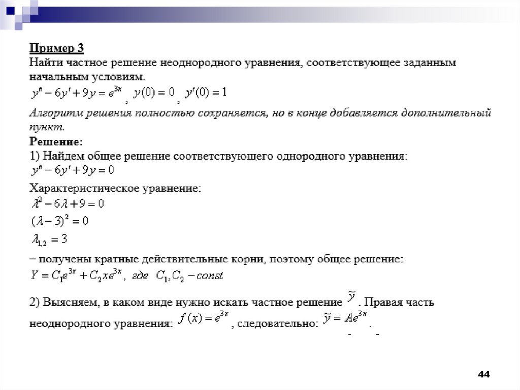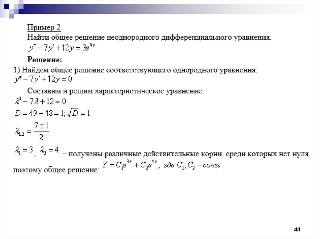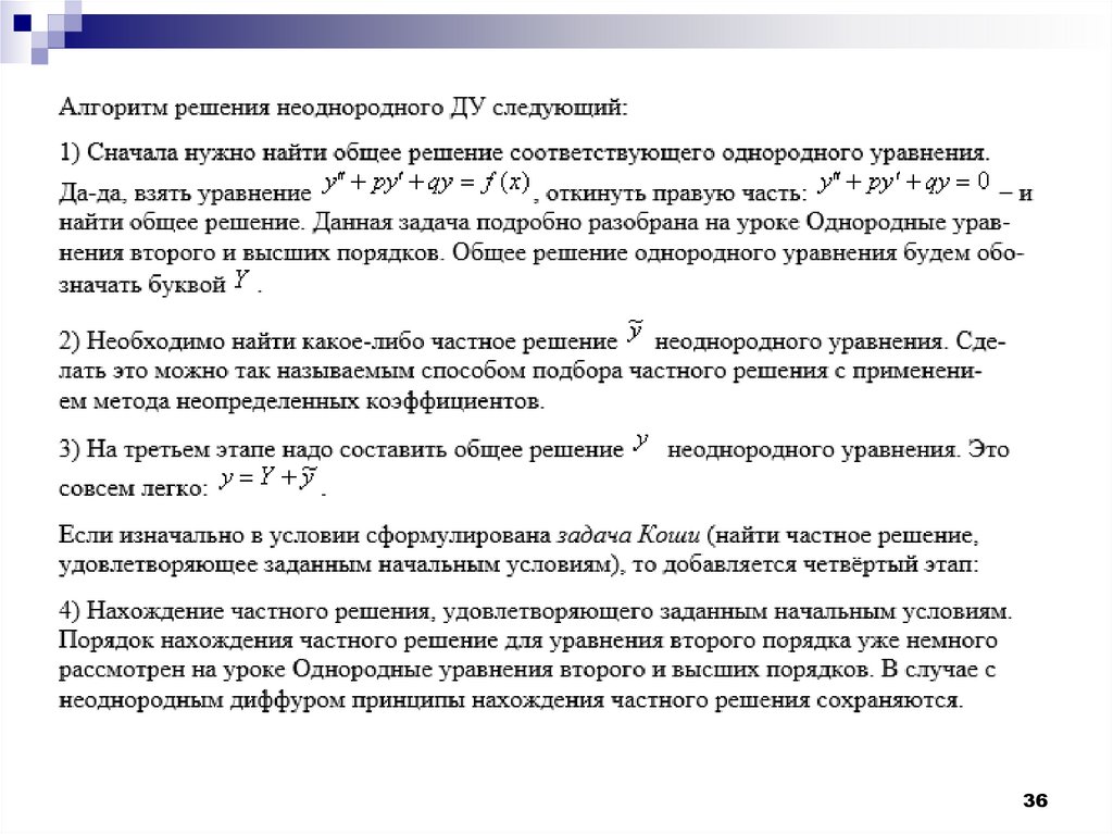как решение неоднородных уравнений 2 порядка с постоянными коэффициентами
