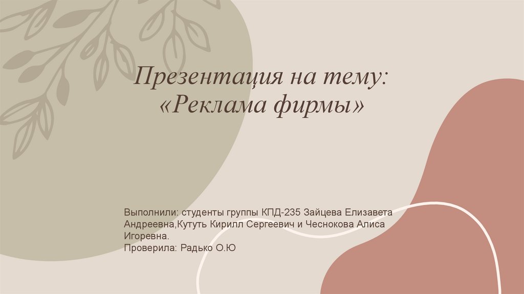 Выполнили: студенты группы КПД-235 Зайцева ЕлизаветаАндреевна,Кутуть Кирилл Сергеевич и Чеснокова Алиса