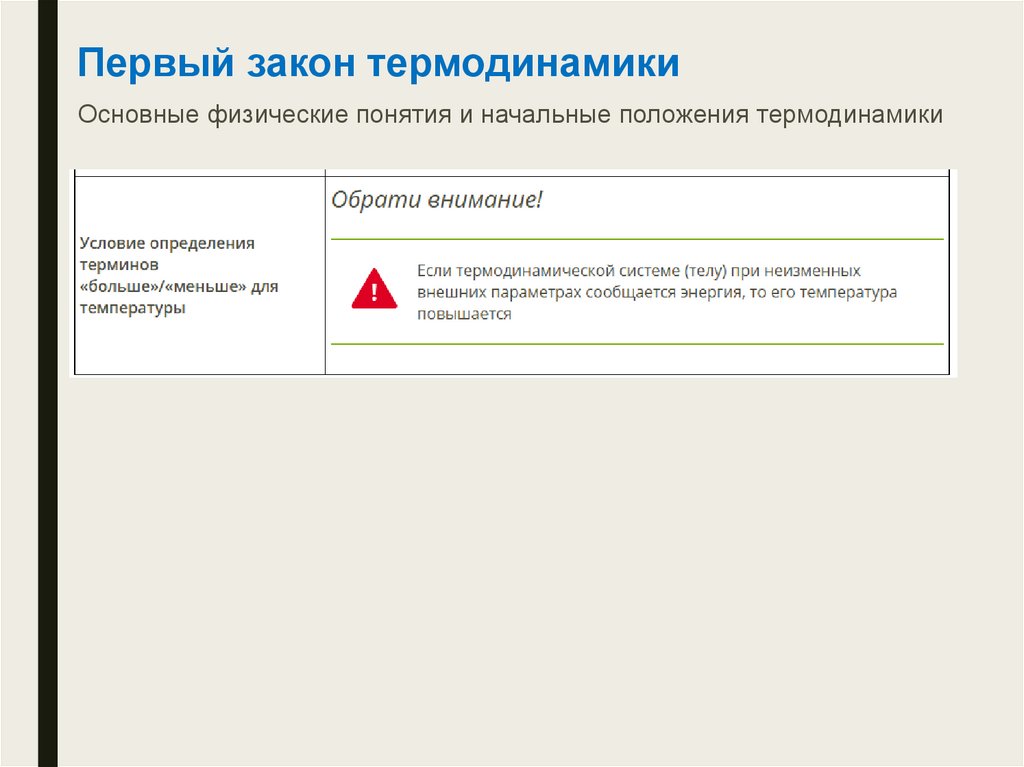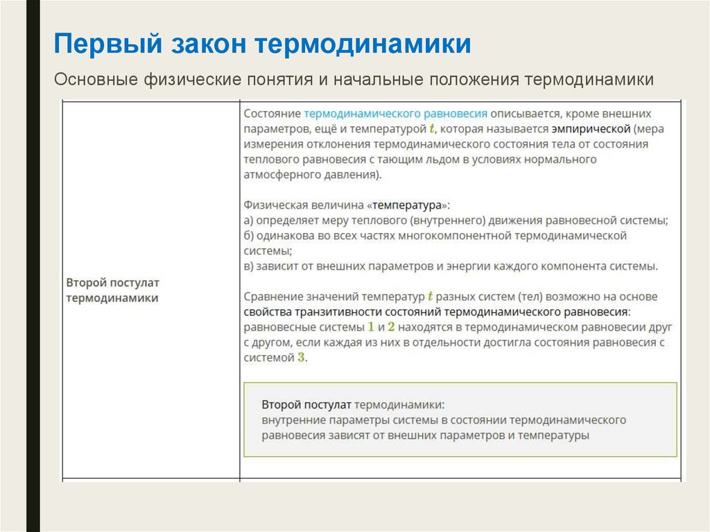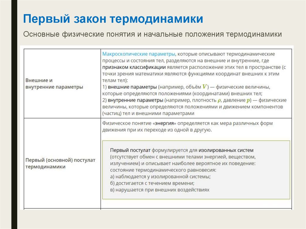 Первый закон термодинамикиОсновные физические понятия и начальные положения термодинамики