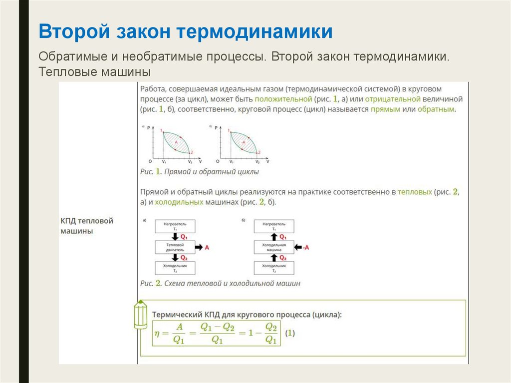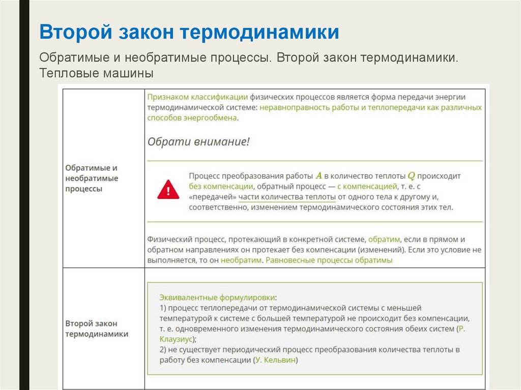 Второй закон термодинамикиОбратимые и необратимые процессы. Второй закон термодинамики.