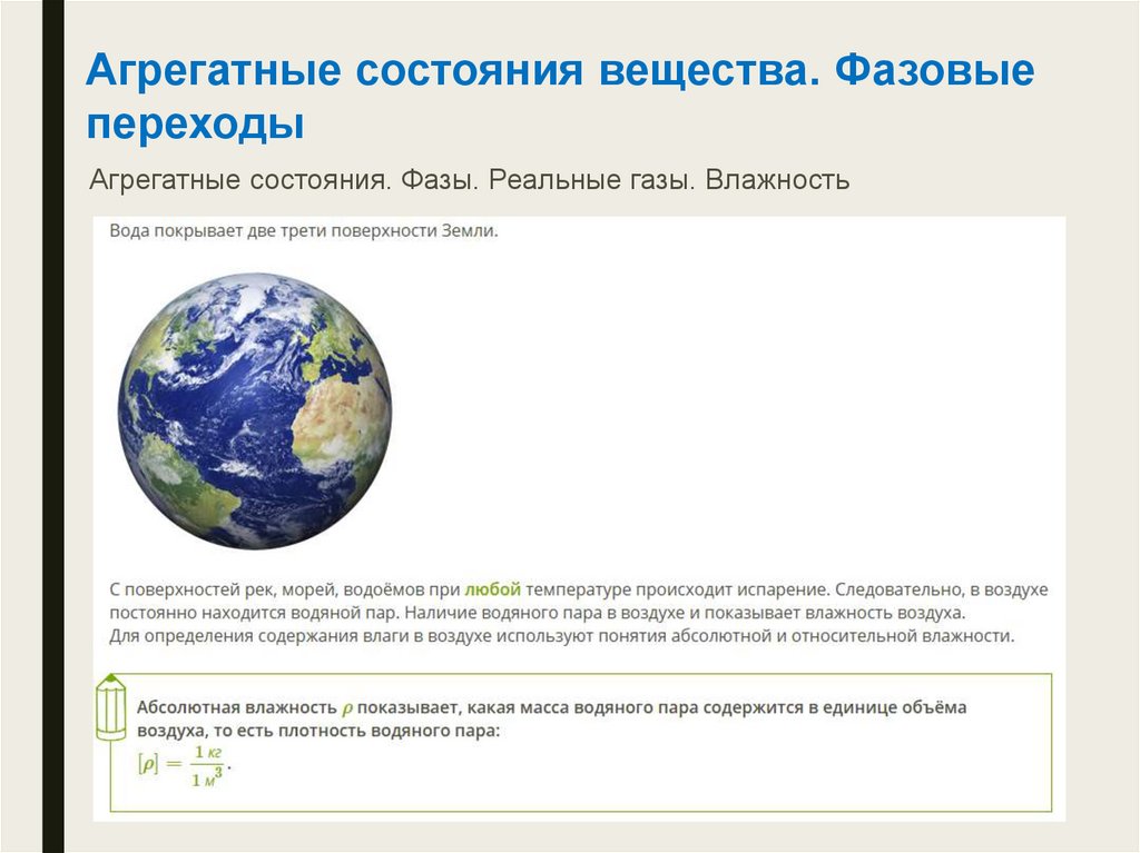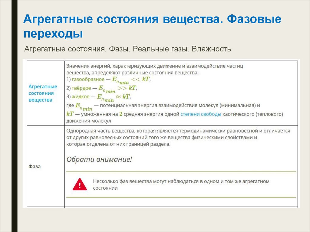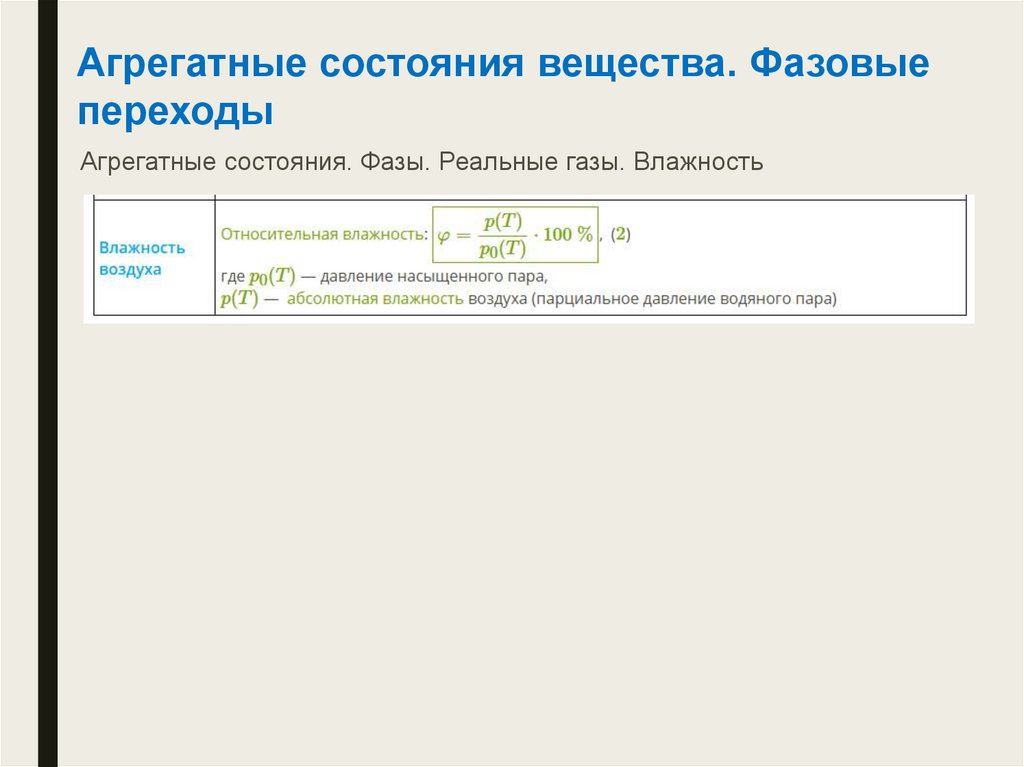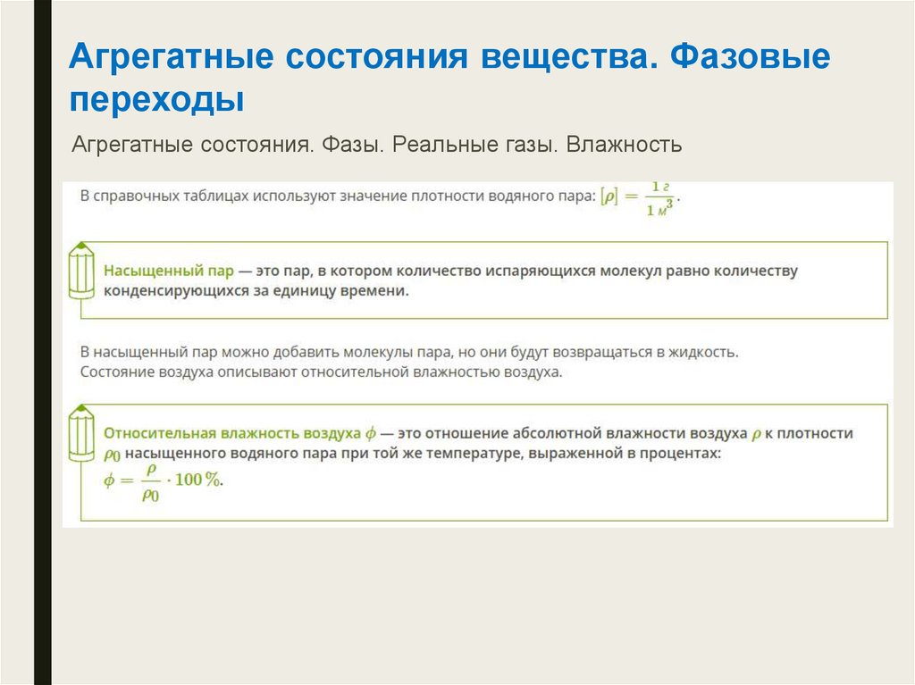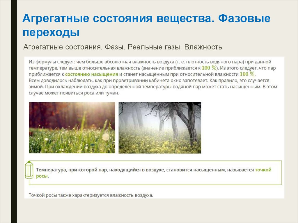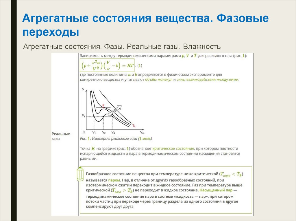 Агрегатные состояния. Фазы. Реальные газы. Влажность