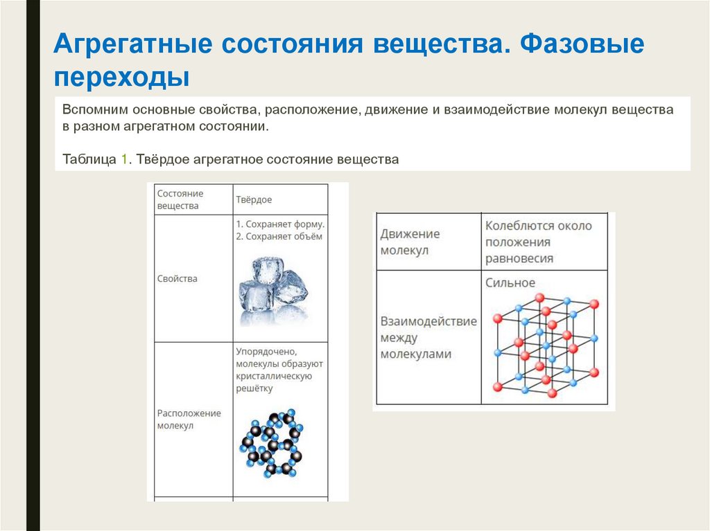 Таблица 1. Твёрдое агрегатное состояние вещества