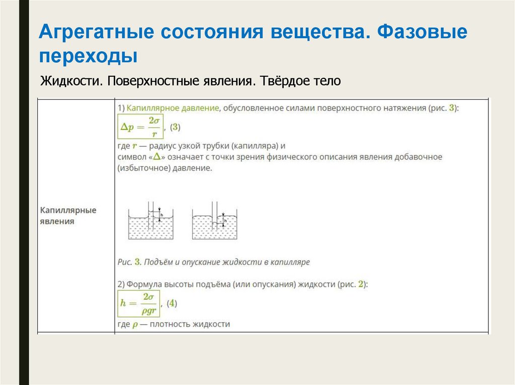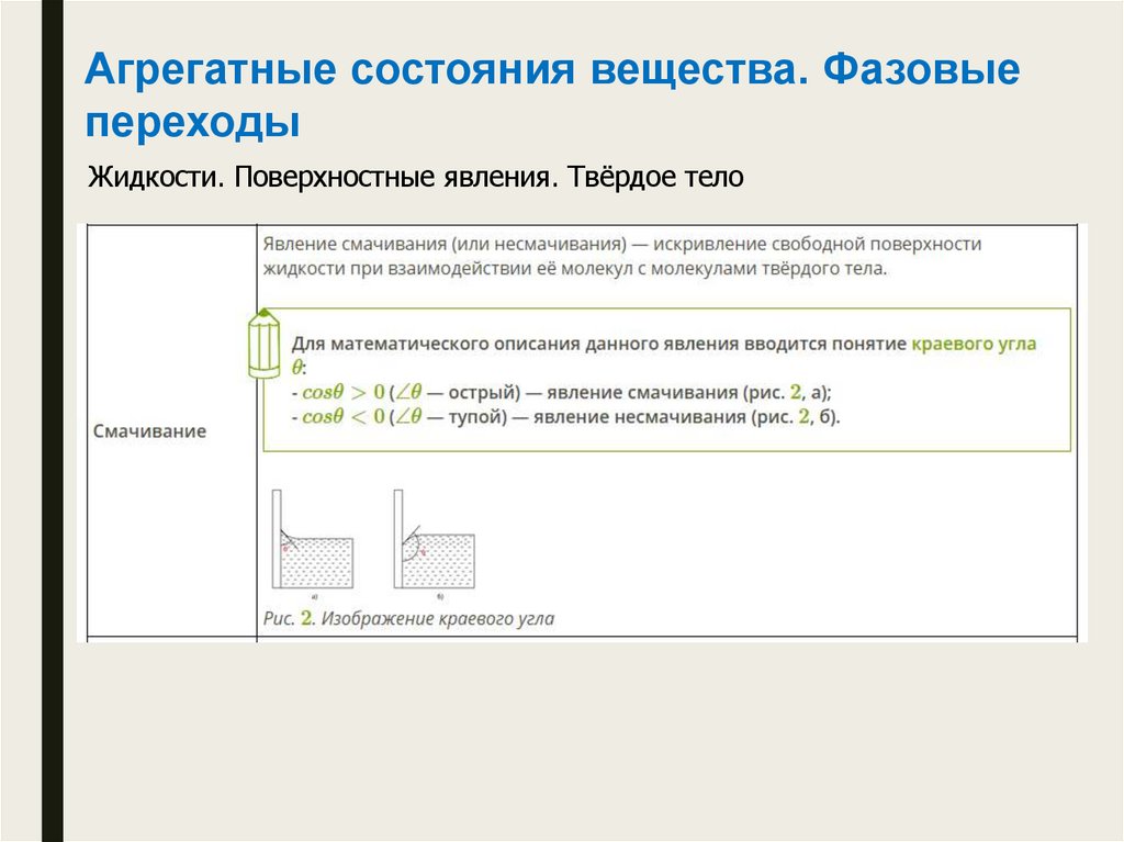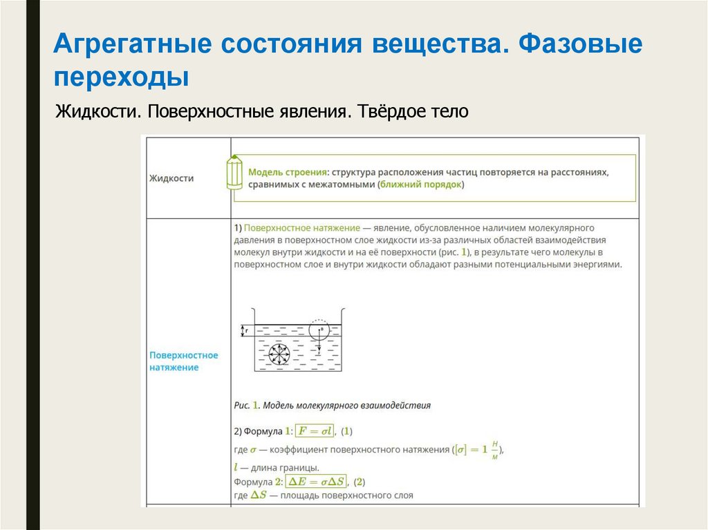 Жидкости. Поверхностные явления. Твёрдое тело