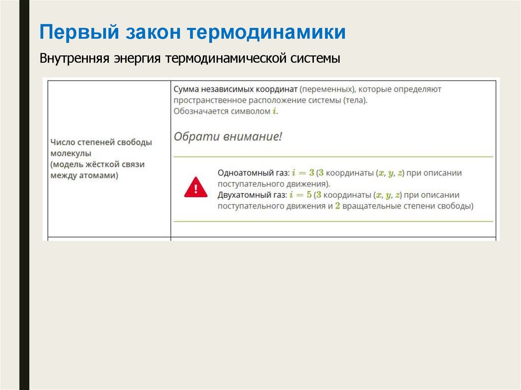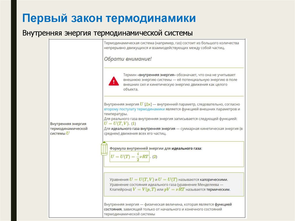 Первый закон термодинамикиВнутренняя энергия термодинамической системы