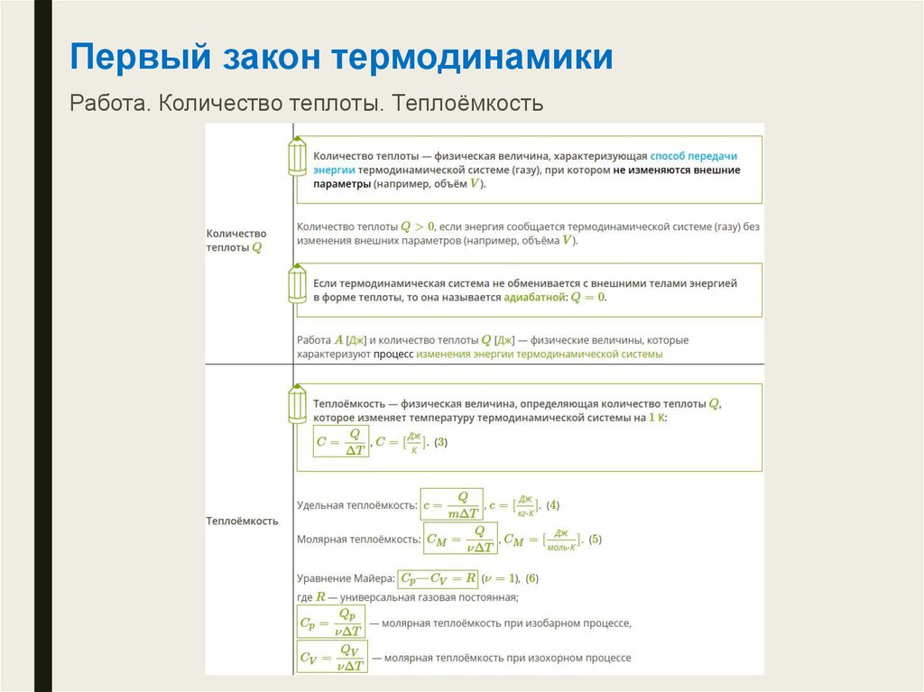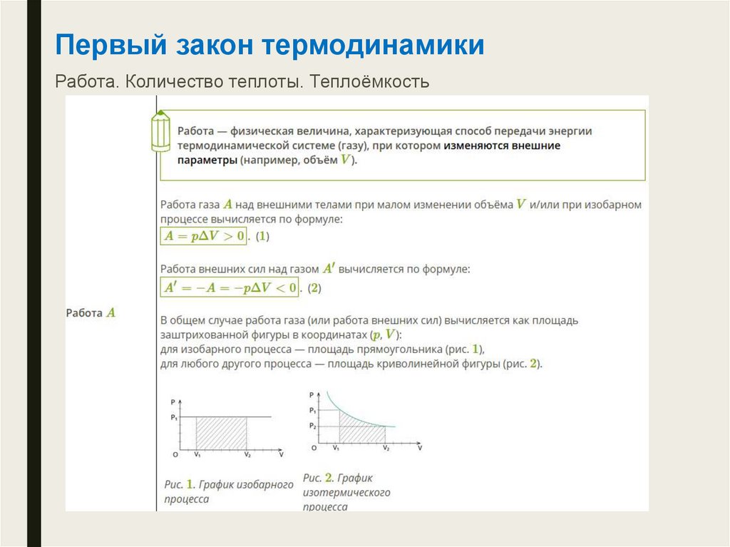 Первый закон термодинамикиРабота. Количество теплоты. Теплоёмкость