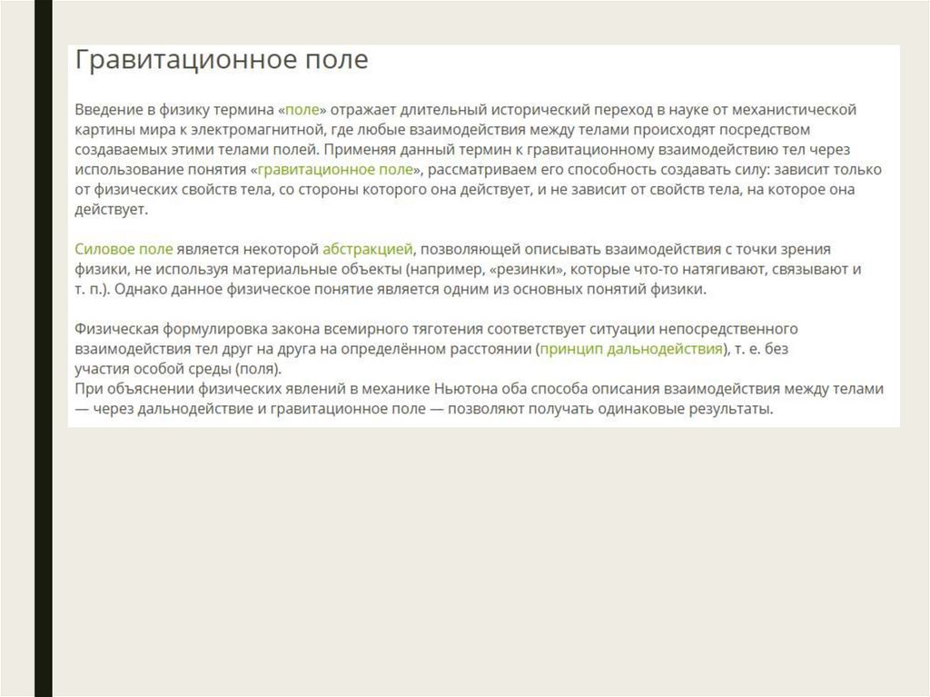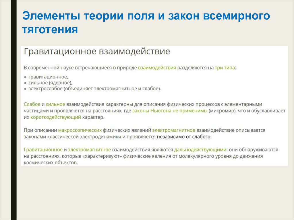 Элементы теории поля и закон всемирноготяготения