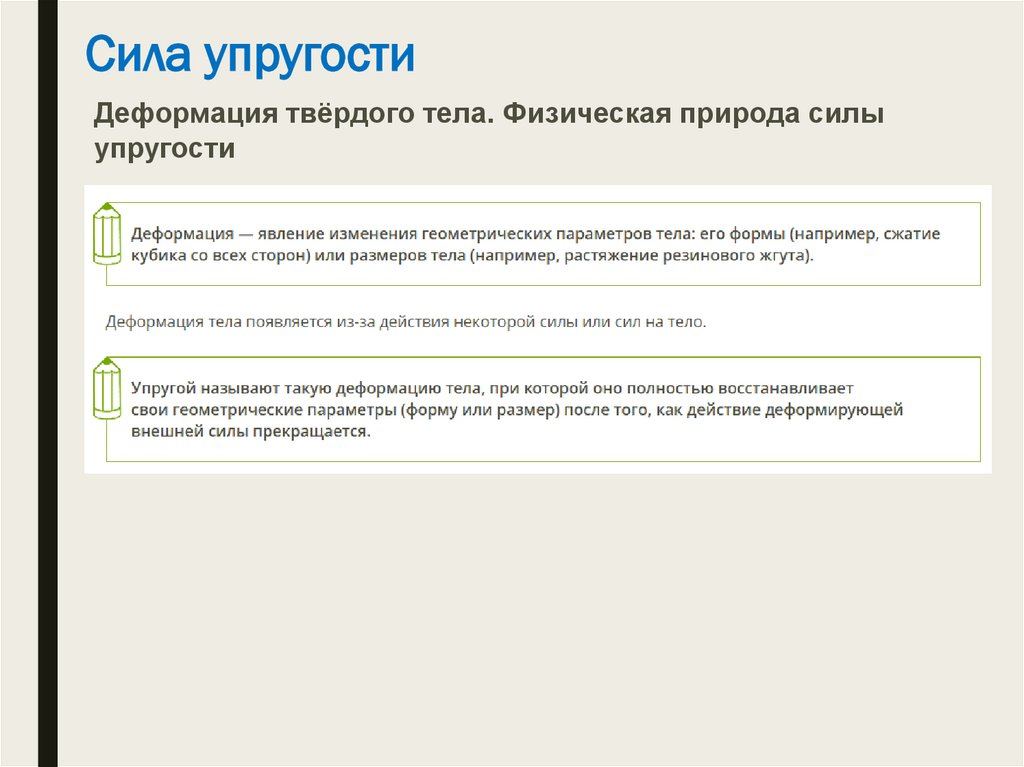 Сила упругостиДеформация твёрдого тела. Физическая природа силы