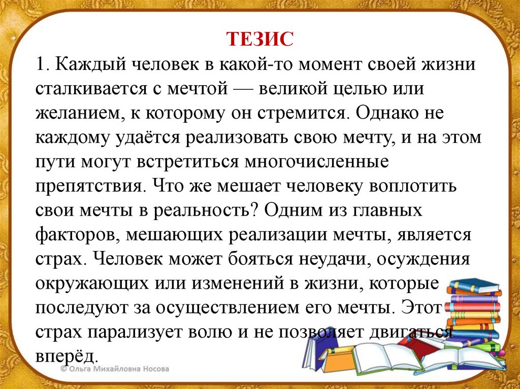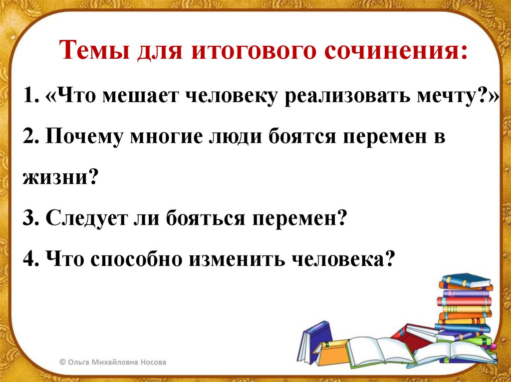 Темы для итогового сочинения:1. «Что мешает человеку реализовать мечту?»