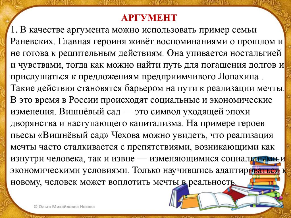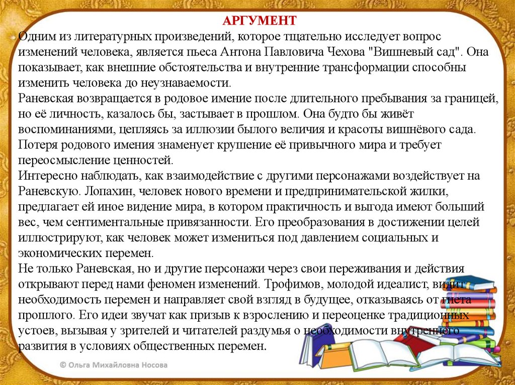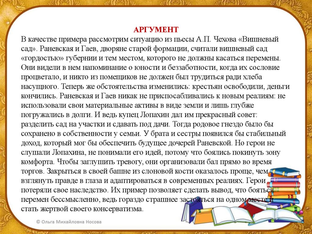 АРГУМЕНТВ качестве примера рассмотрим ситуацию из пьесы А.П. Чехова «Вишневый