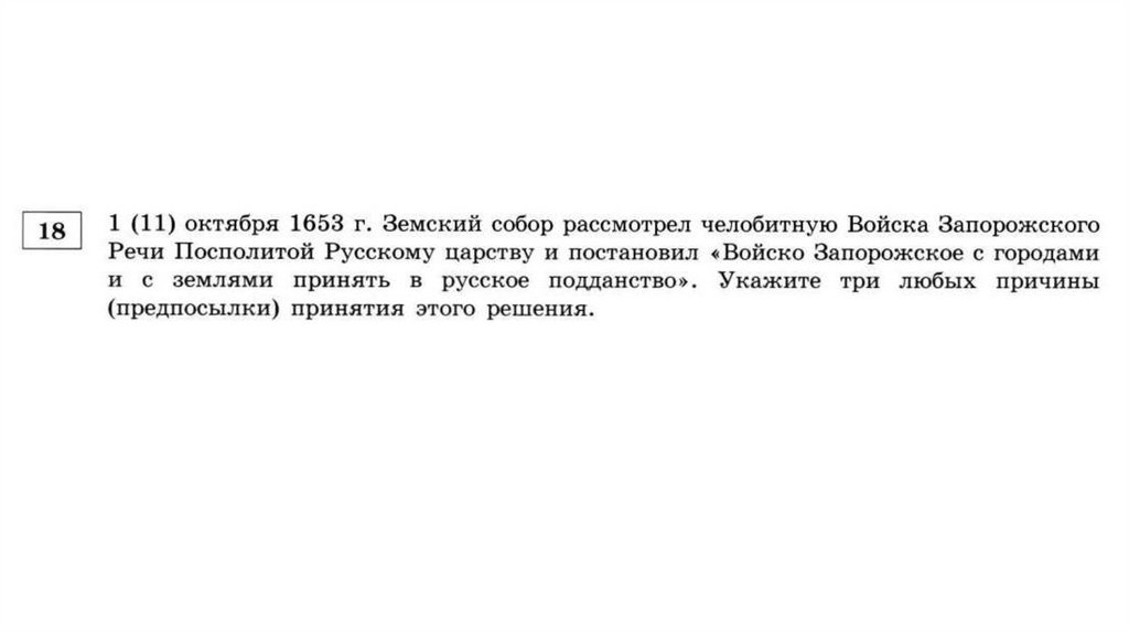 Укажите три любых причины (предпосылки) данного события (задание 18)