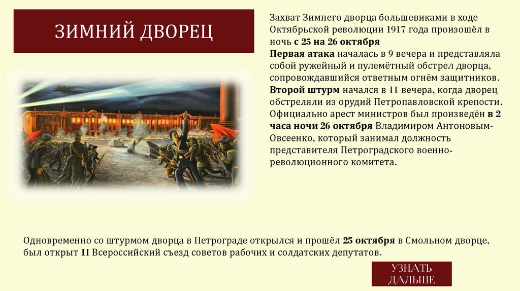 ЗИМНИЙ ДВОРЕЦЗахват Зимнего дворца большевиками в ходе