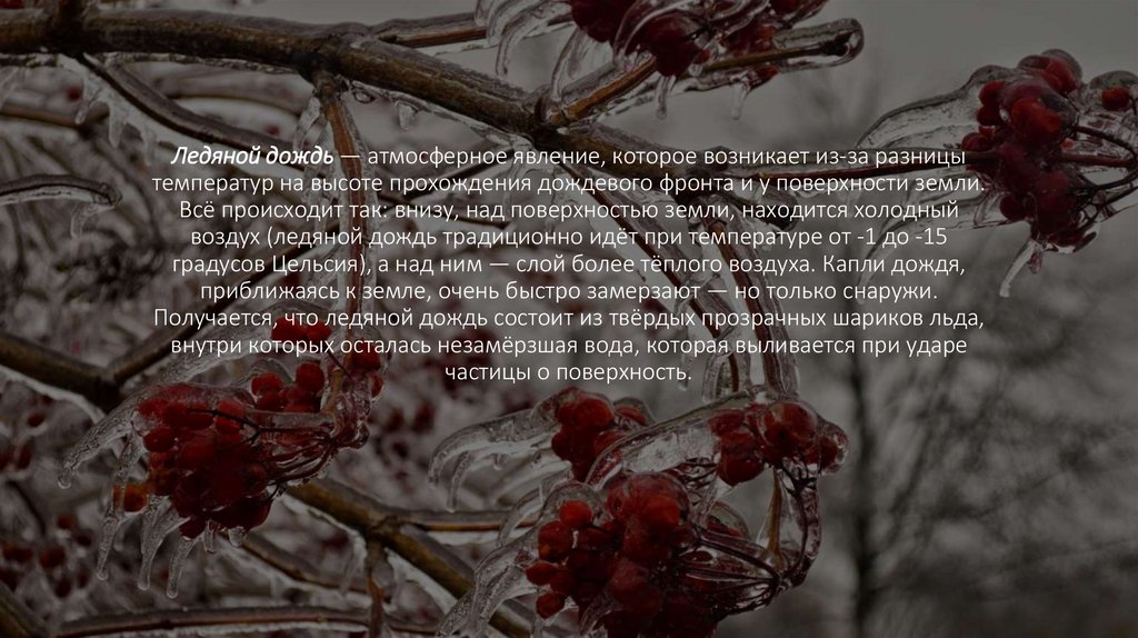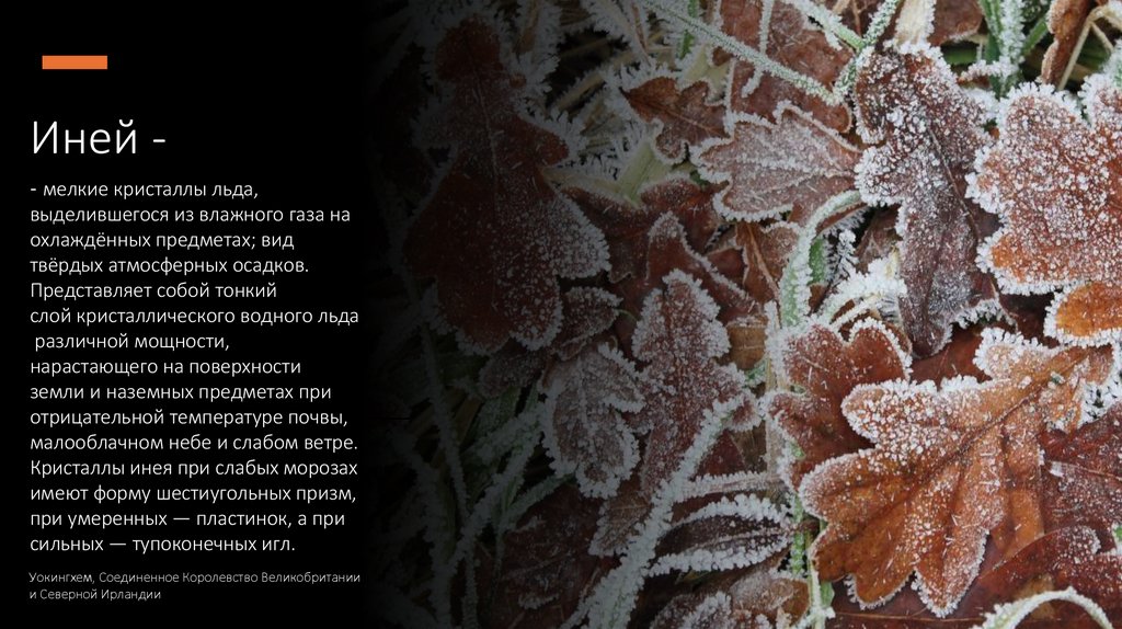 34. Замерзшая роса: отложение белых замерзших капель росы. Замерзшую росу не следует путать с инеем.