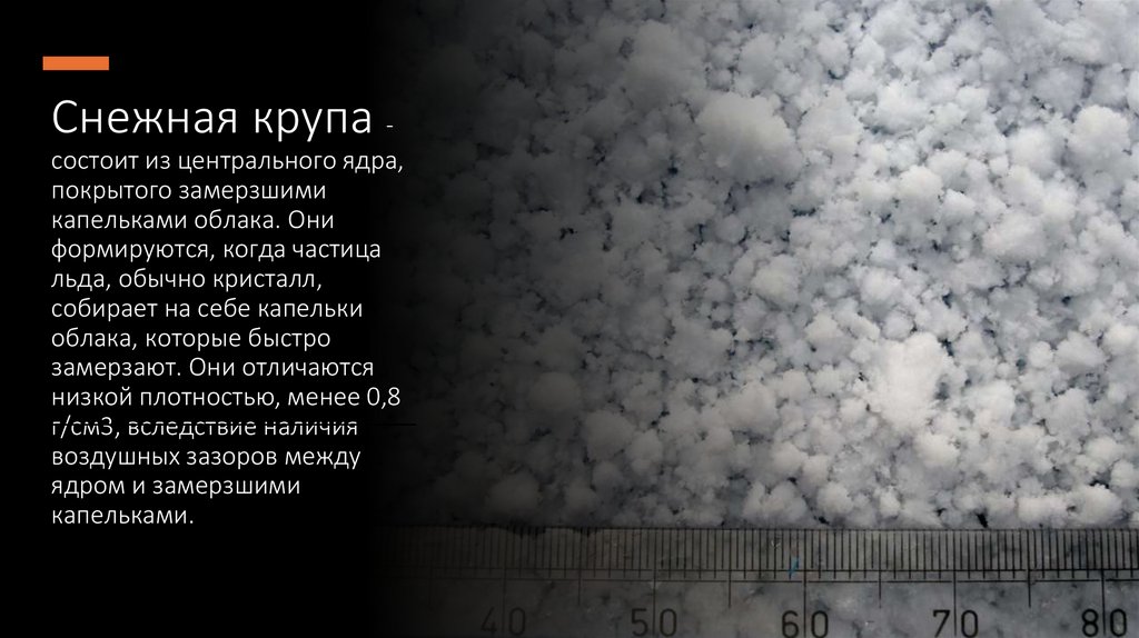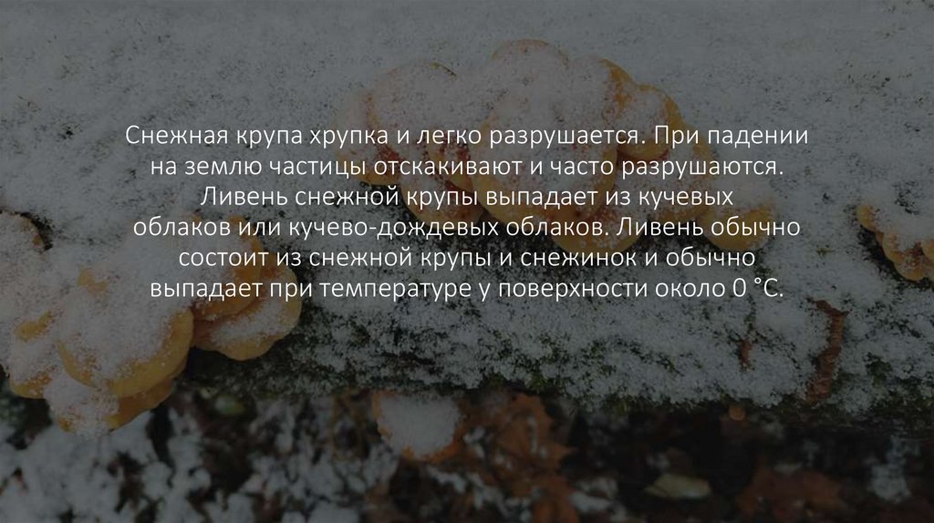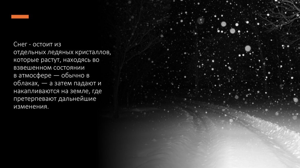 9. Снег - остоит из отдельных ледяных кристаллов, которые растут, находясь во взвешенном состоянии в атмосфере — обычно в облаках,
