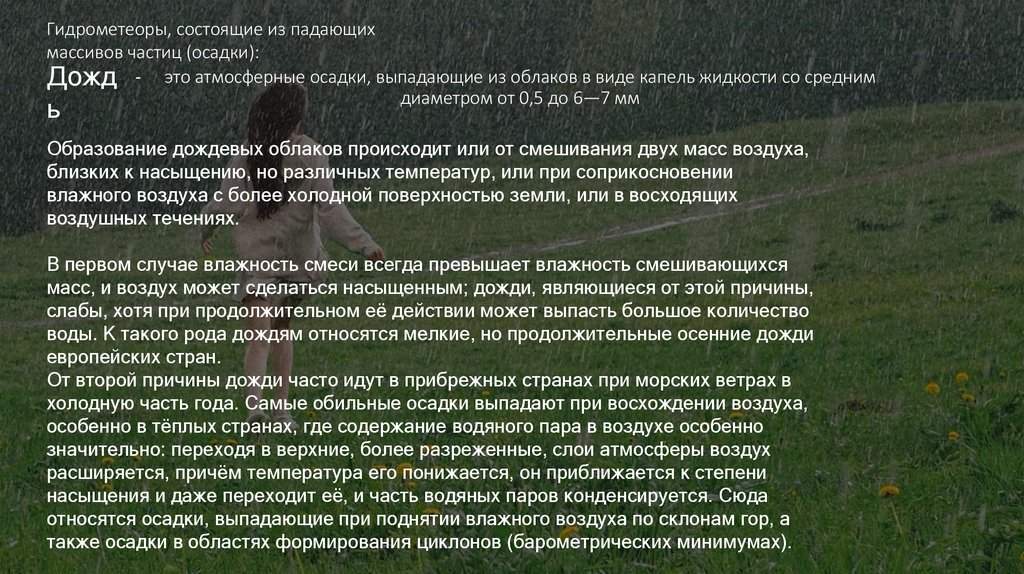 воды. К такого рода дождям относятся мелкие, но продолжительные осенние дожди