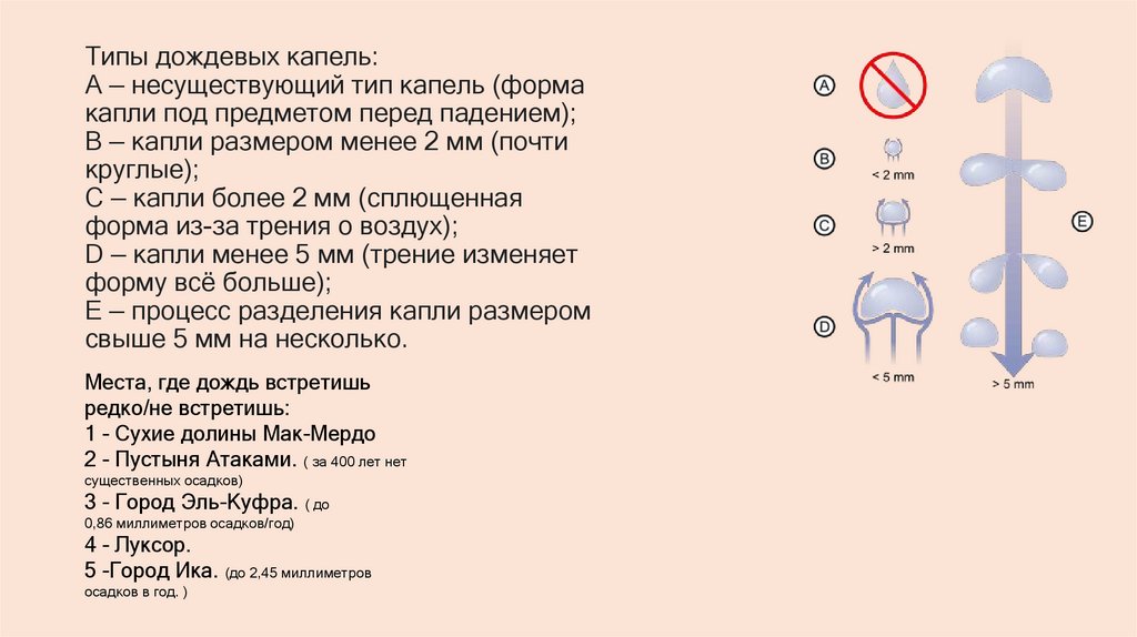 Типы дождевых капель:A — несуществующий тип капель (форма