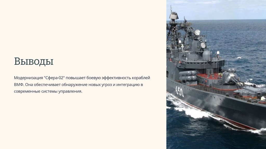 ВыводыМодернизация "Сфера-02" повышает боевую эффективность кораблей