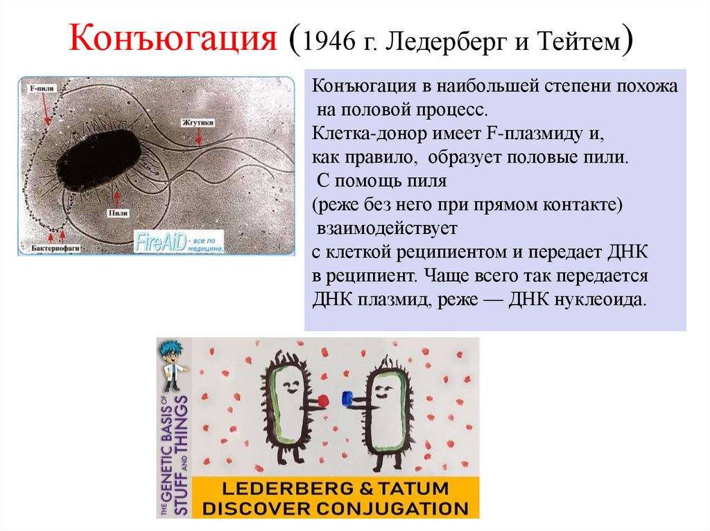 Конъюгация (1946 г. Ледерберг и Тейтем)Конъюгация в наибольшей степени похожа