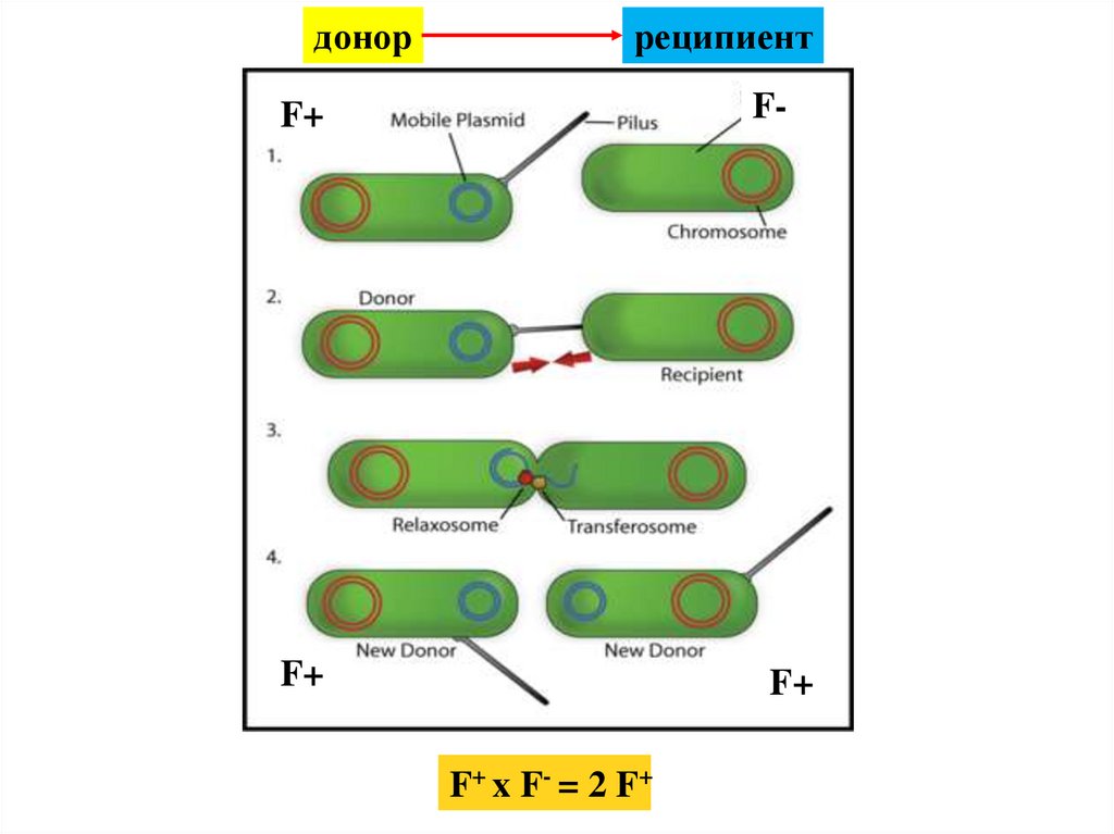 Клетка-донор имеет F-плазмиду и,