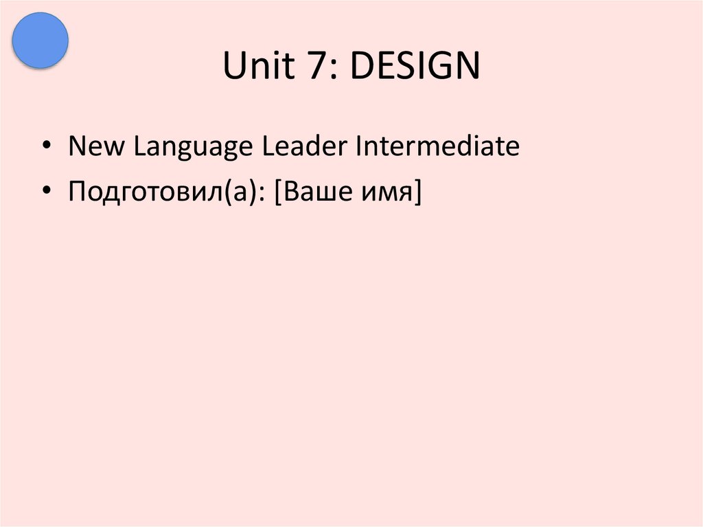 Unit 7: DESIGN• New Language Leader Intermediate