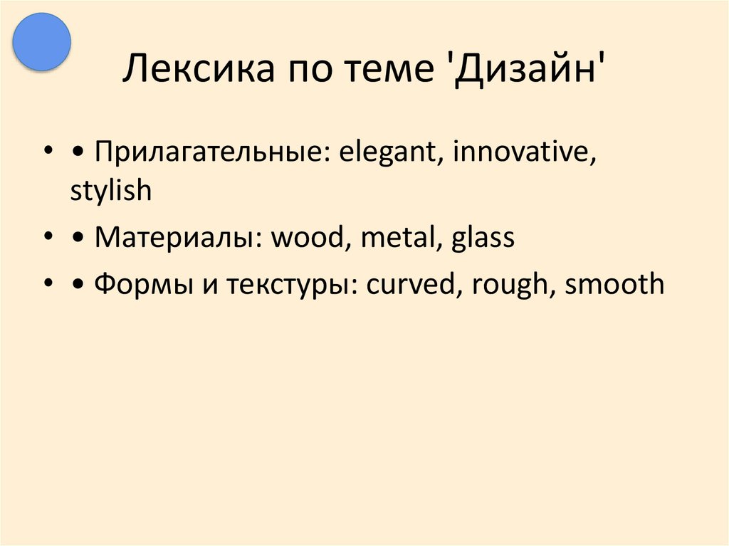Лексика по теме 'Дизайн'• • Прилагательные: elegant, innovative,