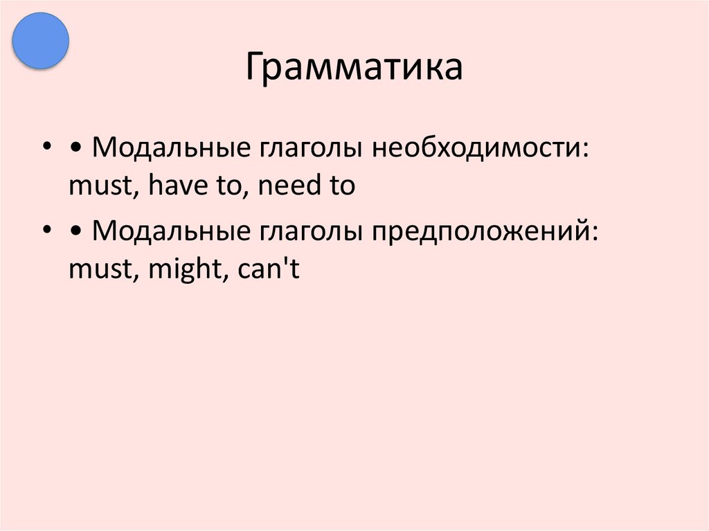 Грамматика• • Модальные глаголы необходимости: