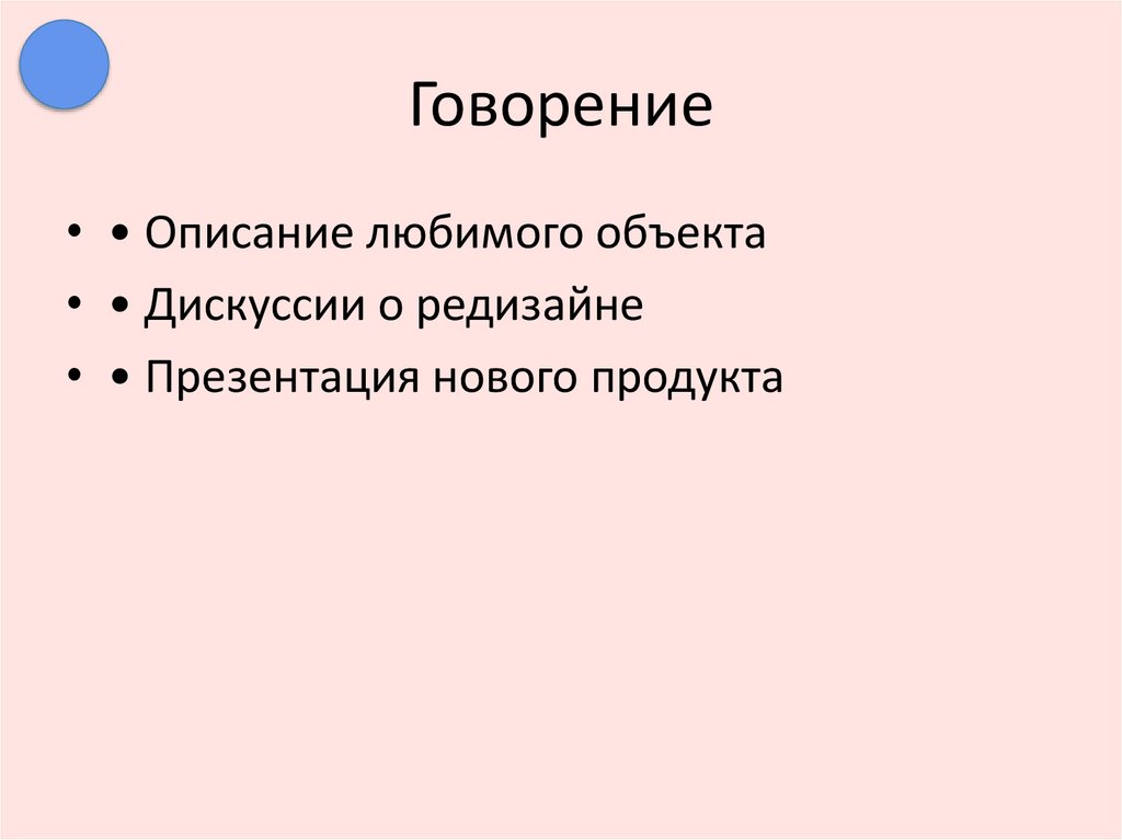 Говорение• • Описание любимого объекта