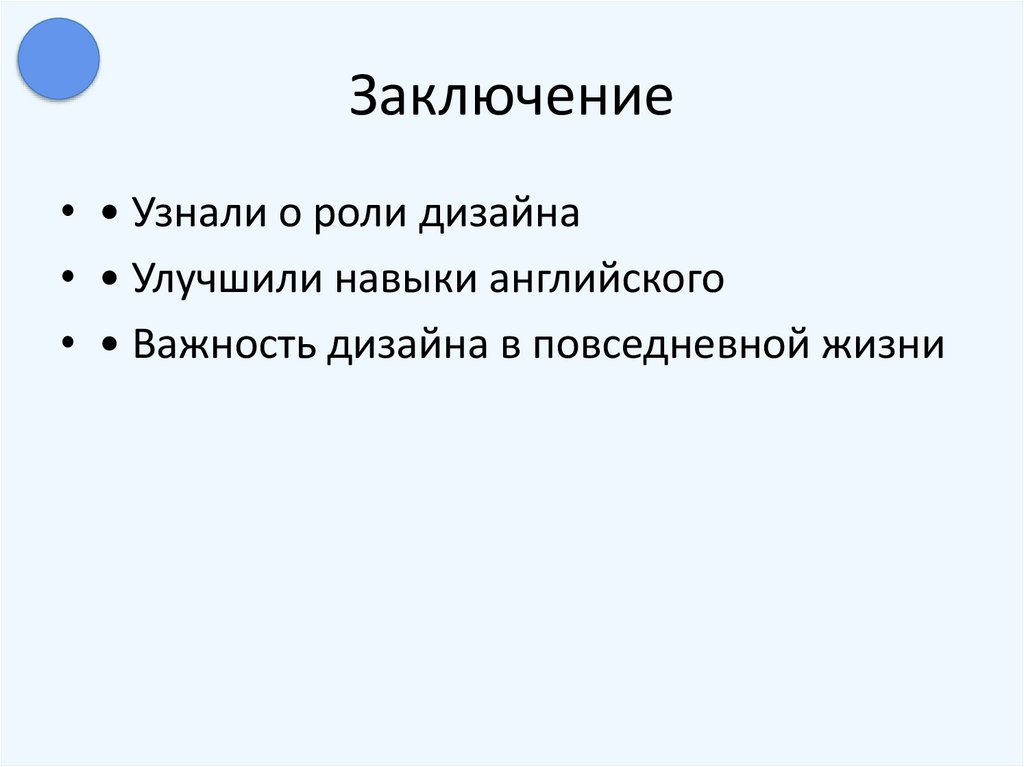 Заключение• • Узнали о роли дизайна