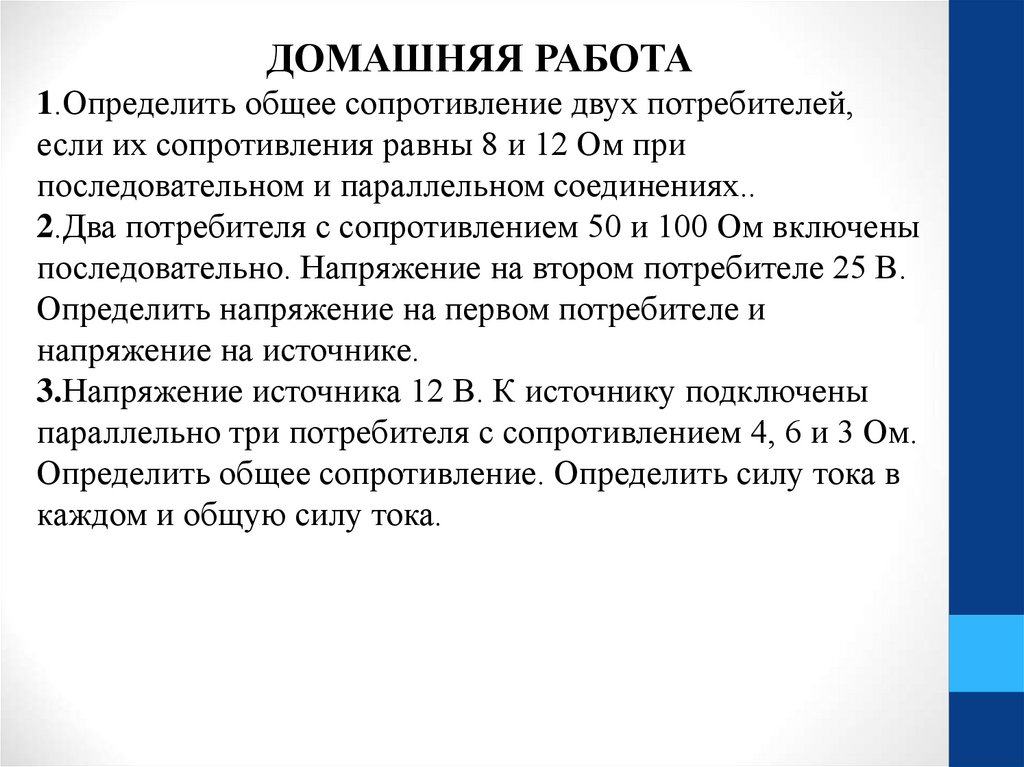 ДОМАШНЯЯ РАБОТА1.Определить общее сопротивление двух потребителей,