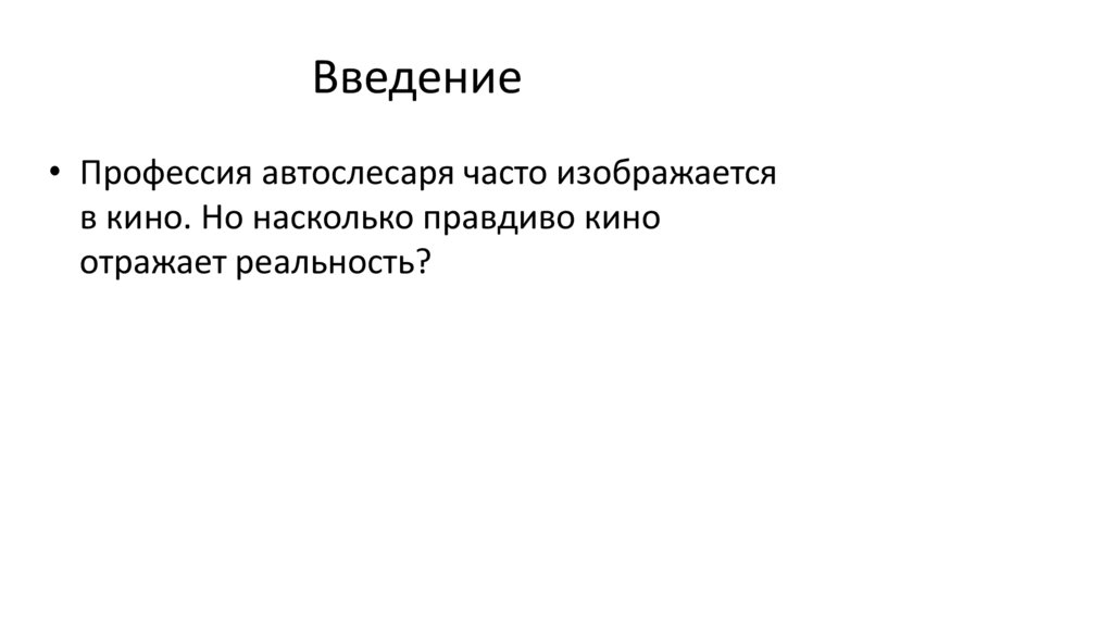 Введение• Профессия автослесаря часто изображается