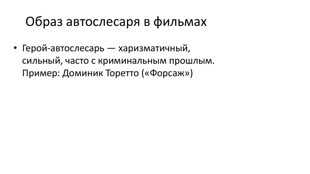 Образ автослесаря в фильмах• Герой-автослесарь — харизматичный,