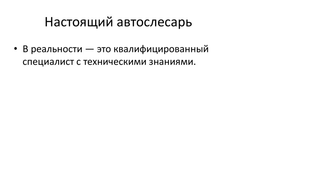 Настоящий автослесарь• В реальности — это квалифицированный