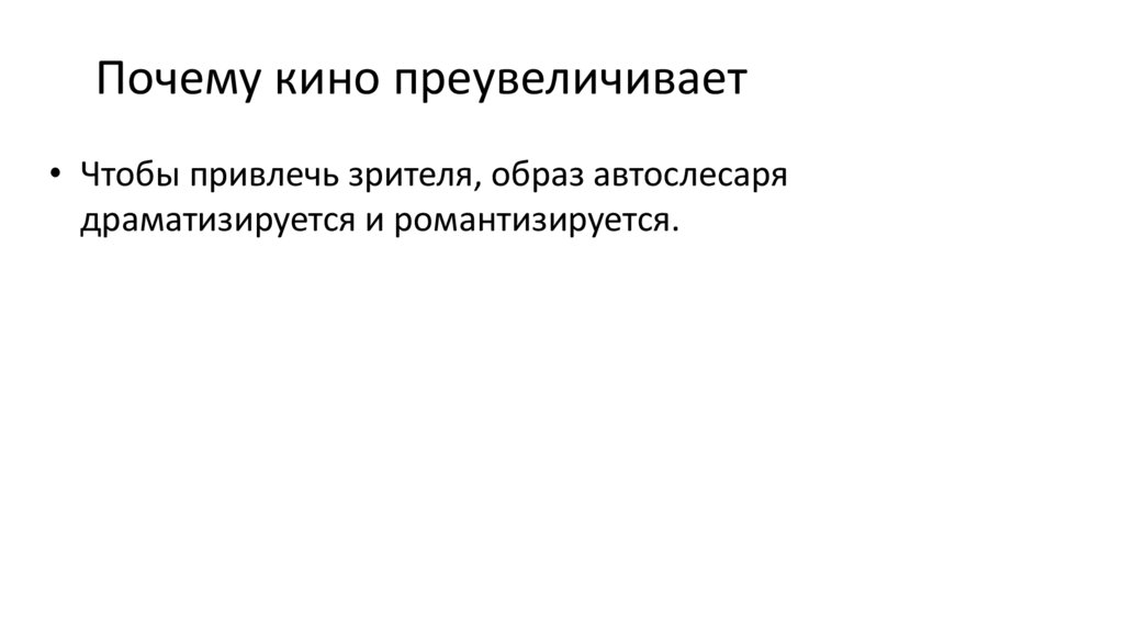 Почему кино преувеличивает• Чтобы привлечь зрителя, образ автослесаря