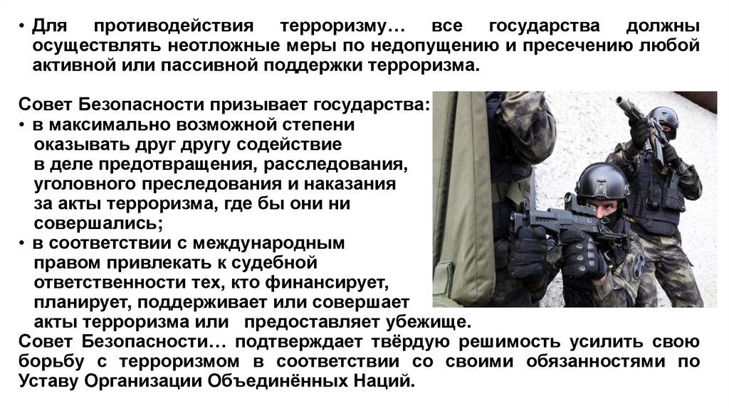 Несмотря на определённые положительные результаты в областипротиводействия терроризму, террористическая угроза продолжает