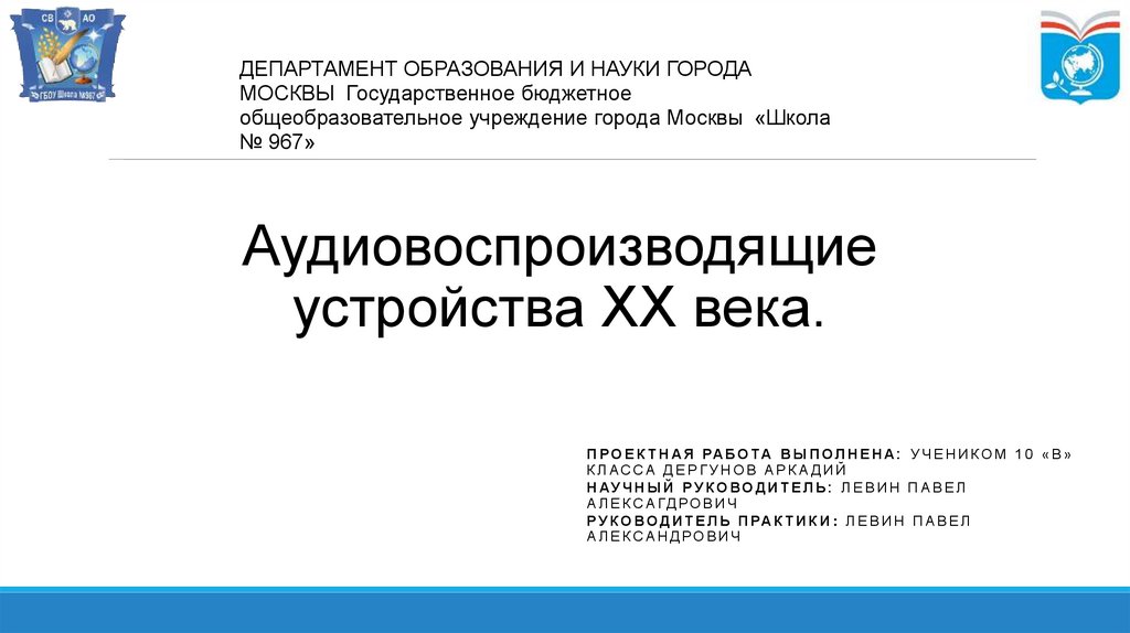 Н АУ Ч Н Ы Й Р У К О В О Д И Т Е Л Ь : Л Е В И Н П А В Е Л