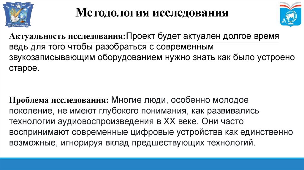 Методология исследованияАктуальность исследования:Проект будет актуален долгое время