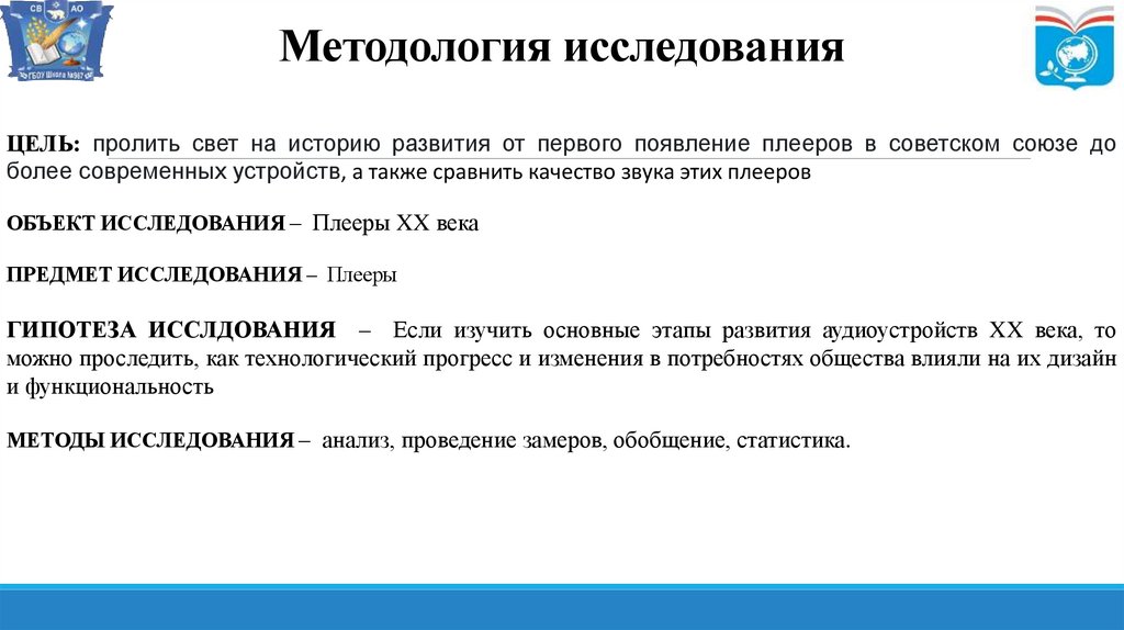 Методология исследованияЦЕЛЬ: пролить свет на историю развития от первого появление плееров в советском союзе до