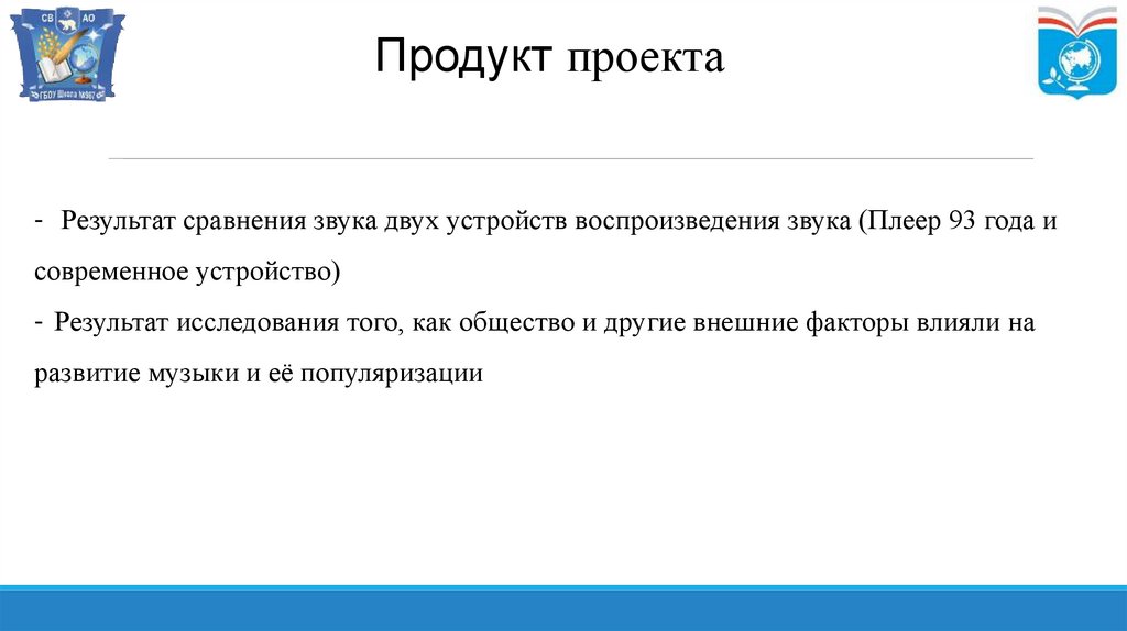 Продукт проекта- Результат сравнения звука двух устройств воспроизведения звука (Плеер 93 года и