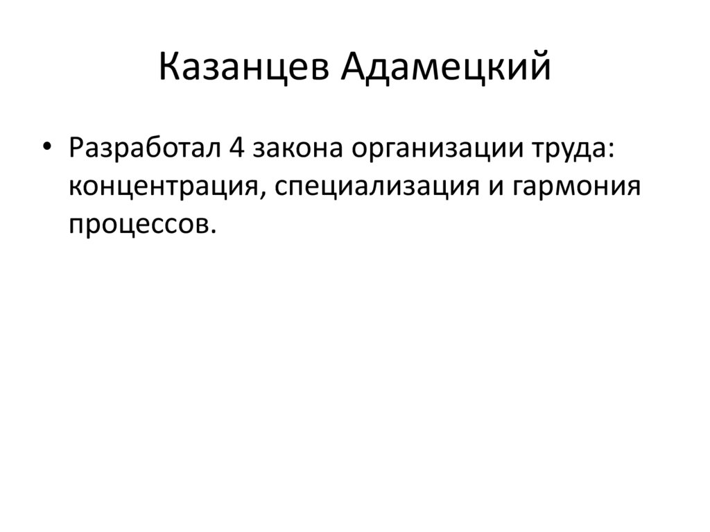 Казанцев Адамецкий• Разработал 4 закона организации труда: