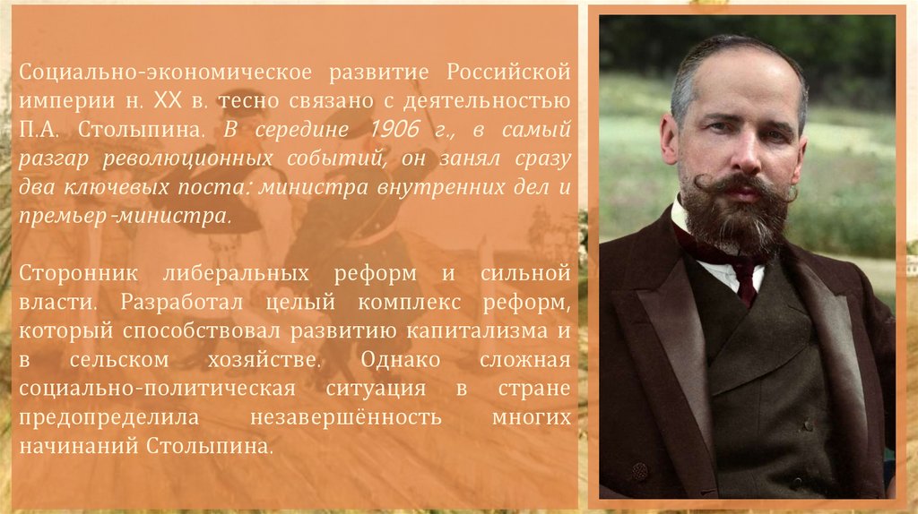 Социально-экономическое развитие Российскойимперии н. XX в. тесно связано с деятельностью