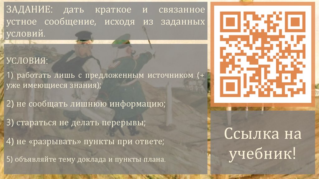 ЗАДАНИЕ: дать краткое и связанноеустное сообщение, исходя из заданных