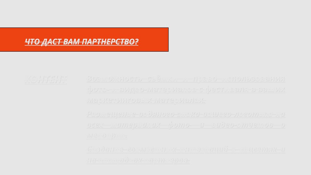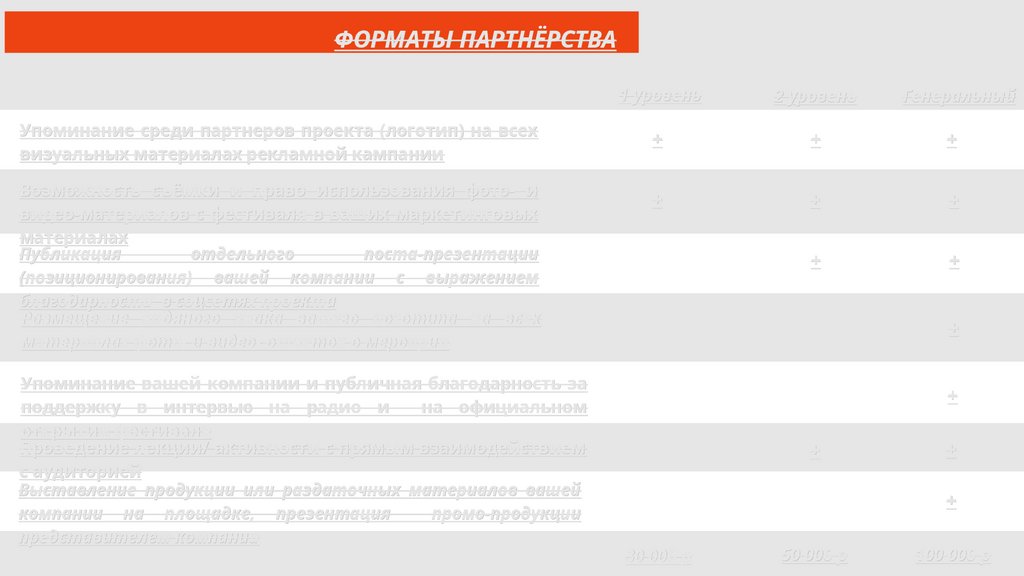 ФОРМАТЫ ПАРТНЁРСТВАУпоминание среди партнеров проекта (логотип) на всех