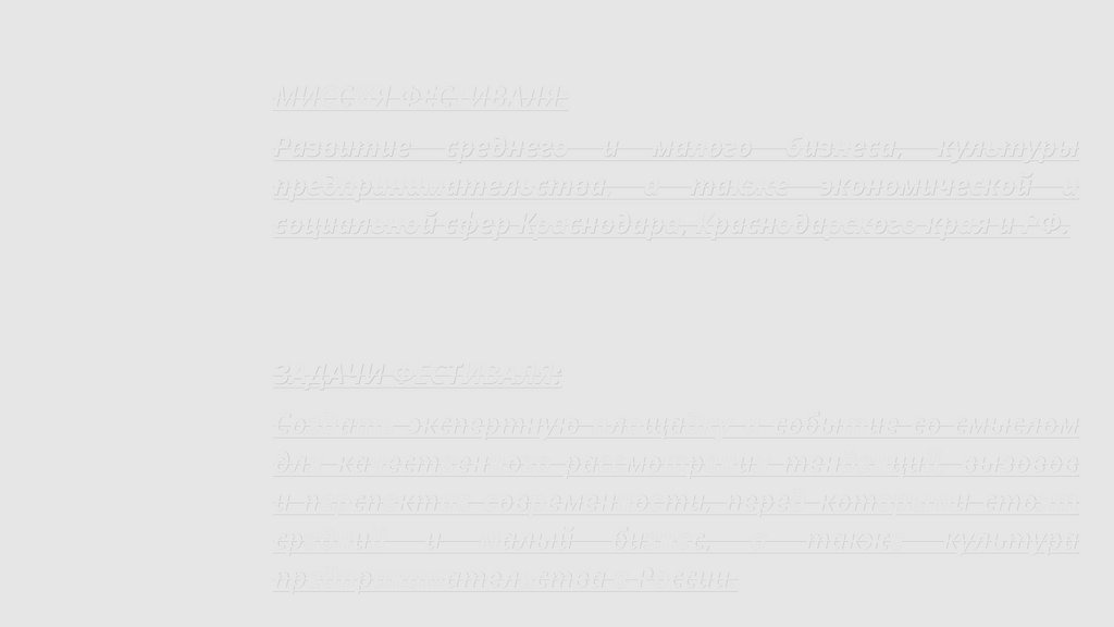 МИССИЯ ФЕСТИВАЛЯ:Развитие среднего и малого бизнеса, культуры
