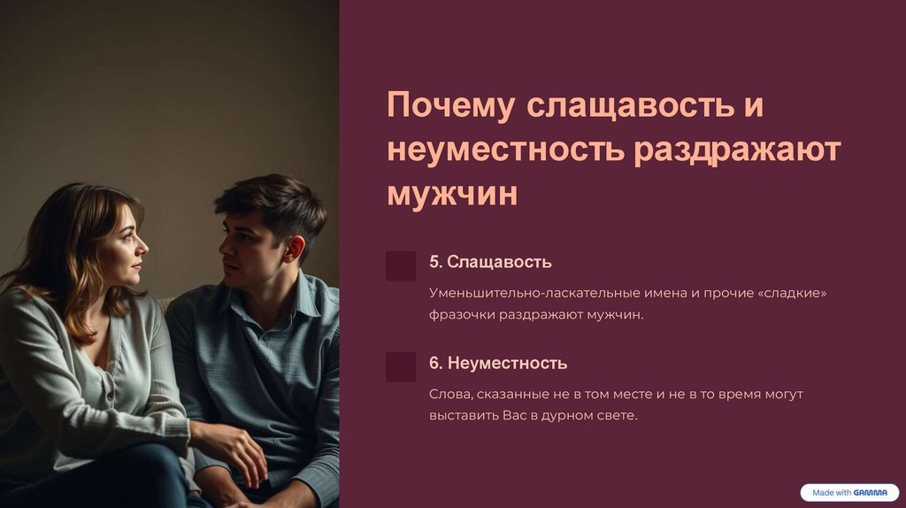 Когда комплимент звучит как попытка добиться личной выгоды, мужчина не доверяет словам и отдаляется.