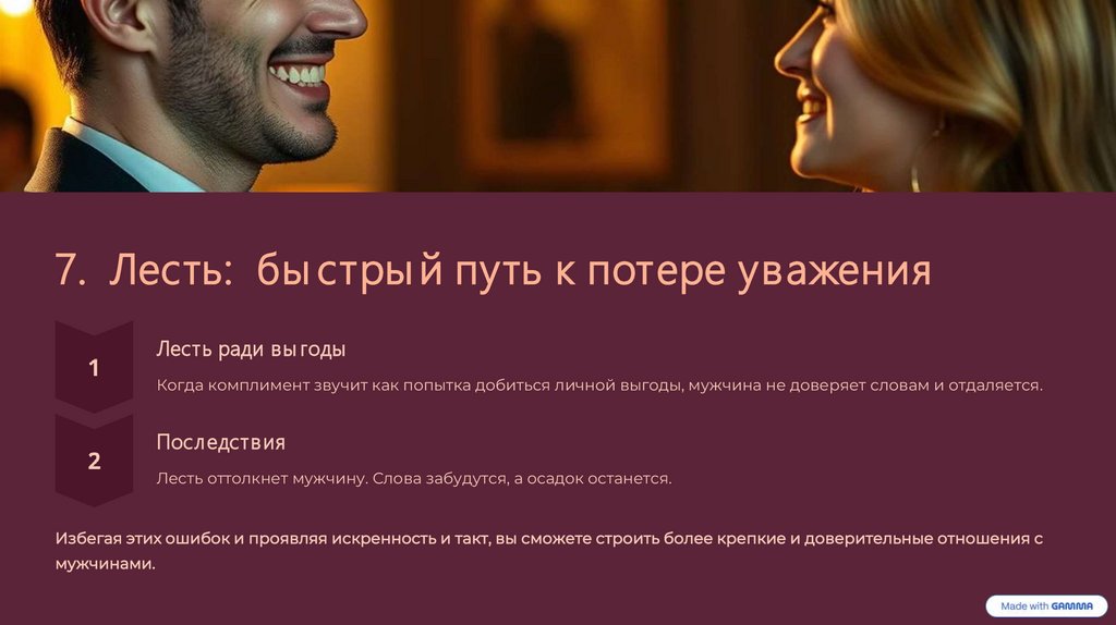 7. Лесть: бы стры й путь к потере уваженияЛесть ради вы годы