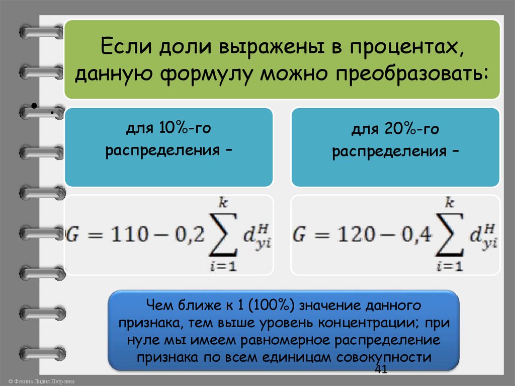Если доли выражены в процентах,данную формулу можно преобразовать: