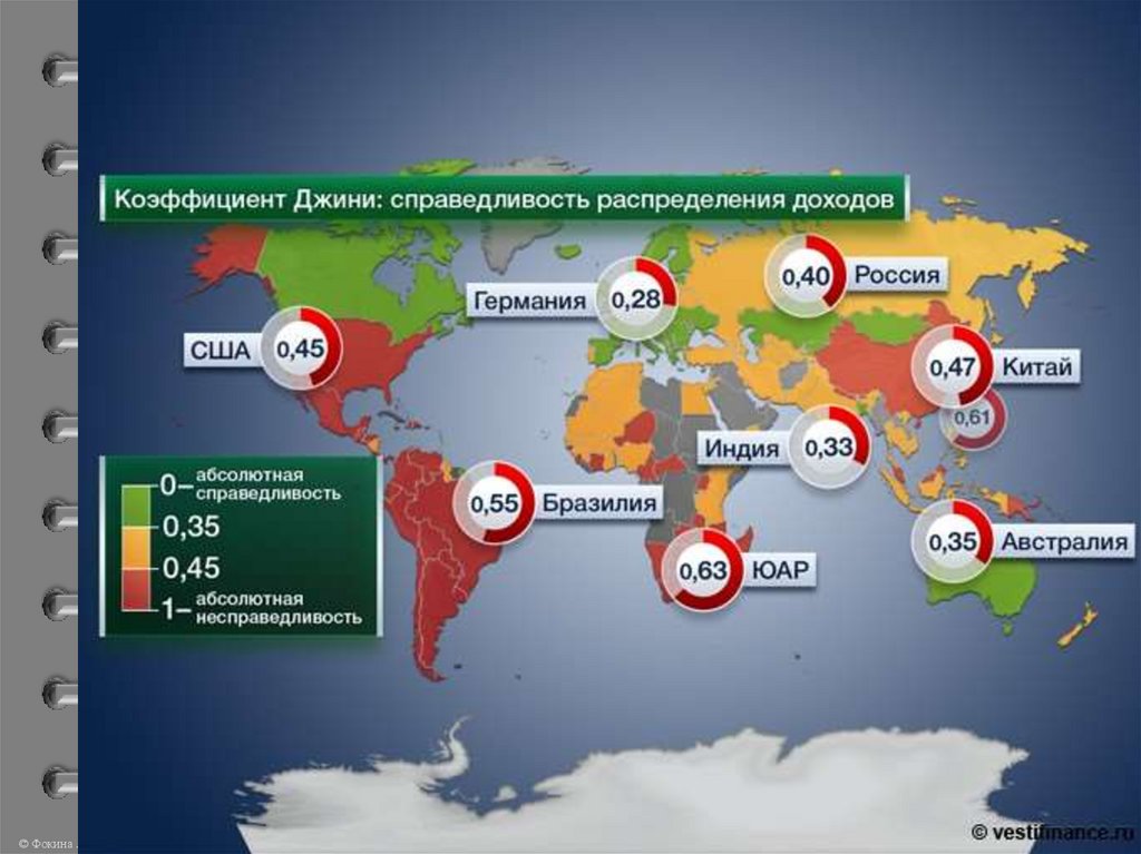 • По данным Global Wealth Report, Россия опережает всекрупные страны мира и имеет коэффициент Джини (по