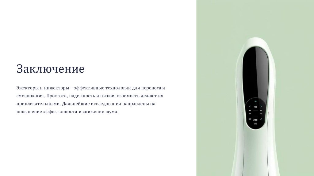 ЗаключениеЭжекторы и инжекторы – эффективные технологии для переноса и