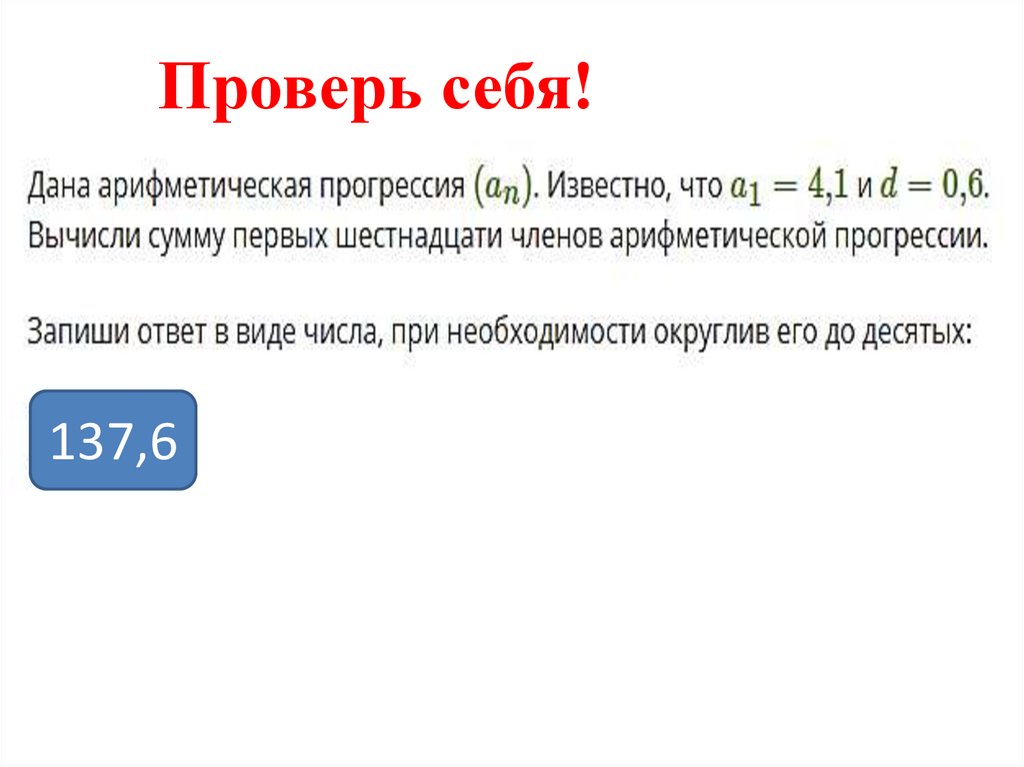 а1 = 1 и d = 3, то аn = 1 + 3(n – 1), т.е. аn = 3n – 2.